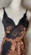 True wrap dress with the feeder hole in the side and all. Shows a little leg. Adjustable spaghetti straps. Fits true to a medium. Brand no longer in business so these pieces are becoming rare. Awesome lingerie vibe in a super trendy print-truly a dress ahead of its time.