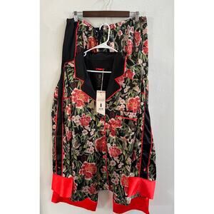 We are HAH PJ Set Flock 2gether Noir Black & Red Floral Satin Women’s Plus XXL