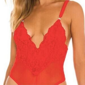 We are HAH Size XS NEW Cheap and Cheerful Deep V Bodysuit Blood Orange