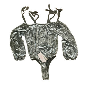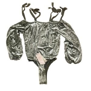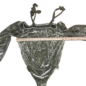 New with tags beautiful green crushed velvet long sleeve bodysuit with adjustable shoulder ties. Size small. Hot as Hell, HAH.