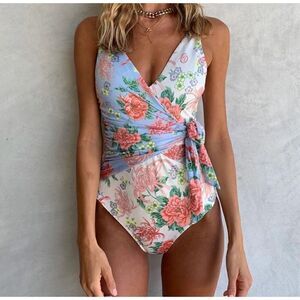 We are Hah Floral Wrap One Piece Swimsuit Size S