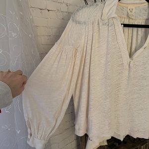 Light weight, Loose fit and cropped. Balloon sleeves, V-Neck with buttons and collar. Great for layering.