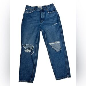 We the Free Boyfriend Distressed Sz 30 Button Fly Straight Leg Med Wash HighRise