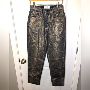 We the Free by Free People Curvy Cropped Metallic Gold and Black Snakeskin Print Coated Jeans size 27