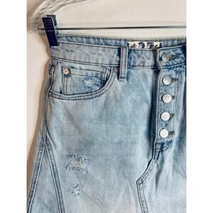 We the Free Denim Mini Skirt Womens Size 27 Distressed Light Wash Button Fly