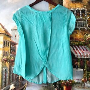 Beautiful almost sheer Robins Egg Blue short sleeve top