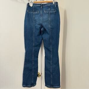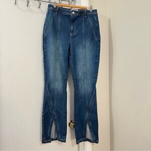 Features: Flattering raised seaming, vented hemline feature, zip fly and button closure, four-pocket design, semi-stretch denim