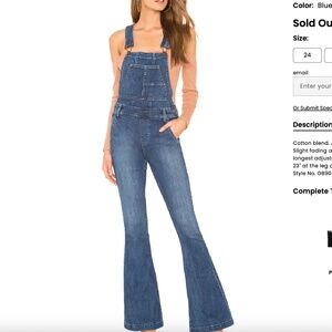 Cotton blend. Adjustable shoulder straps. Chest and back patch pockets. Side slant pockets. Slight fading along front. Hidden side zipper closure. Body measures approx 33" in length at longest adjustment.Because straps are adjustable, length may vary.13" at the knee breaks to 23" at the leg opening. Imported.