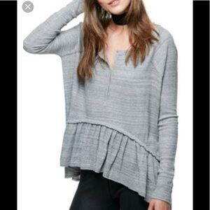 We The Free Free People Coastline Long Sleeve Peplum Top Shirt in Gray Size Small. Coastline peplum top. Gathered ruffle trim hem. Round neckline with snap henley closure. Relaxed fit. Waffle Knit. In excellent condition please see pictures for details.