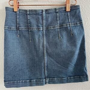 We the Free Free People Denim Virgo Mini Skirt Denim Jean Front Zip