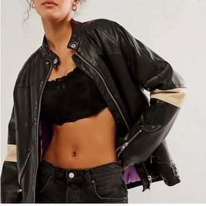 We the Free- Free People FP Ryder Sport Vegan Moto Black Jacket Size Large NWOT