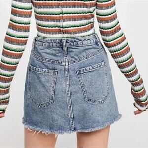 We the Free Free People Zip It Up Denim Frayed Hem Mini Skirt in Blue Size 30