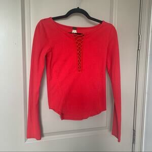 We the Free (Free People) red lace-front long sleeve top size XS NWT