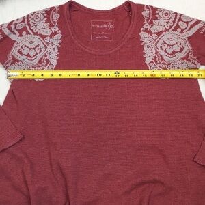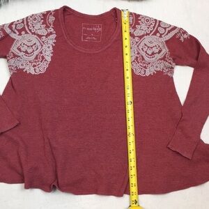Burgundy thermal top - loose fit- Printed lace detail on shoulders - size Med- gently Worn