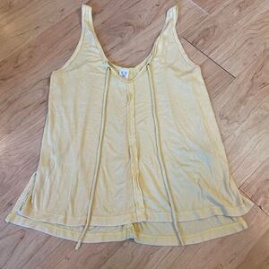 We the Free Free People yellow ribbed lightweight pale yellow tank top. Drawstrings. Twisted straps in back. 97% rayon, 3% spandex. Size small. Great condition!