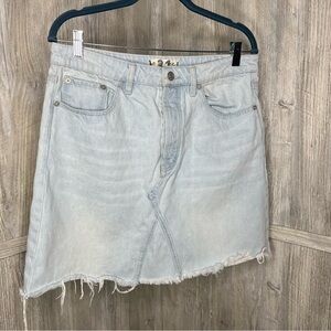 Free People Light Wash Denim Tidal Wave Button Fly Frayed Hem Skirt.