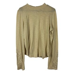 We the Free Hooked on You Mockneck Embroidered Boho Top Cream Size