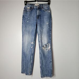 We the Free Jeans Women Size 25 Distressed Dakota Straight Leg Destroyed Blue