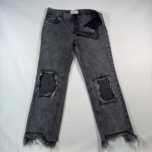 We the Free Jeans Womens 27 Black Straight Button Fly Mid Rise Distressed