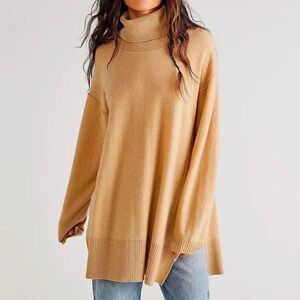 We the Free Jessie Cashmere Turtleneck Tunic Sweater, Tan