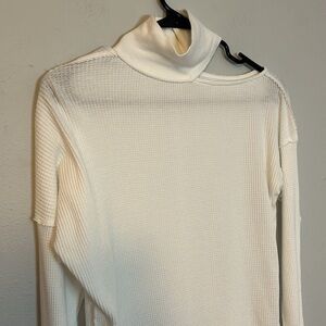 We the Free by Free People Just For You long sleeve shirt, women’s size small. Waffle type fabric, turtleneck, cut out at neck, long rounded hem. Excellent condition. Never worn.