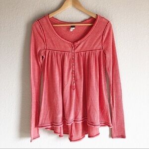 We the Free Long sleeve baby doll waffle knit Henley/ternal top. Coral/red. Size XS. Great preowned condition.