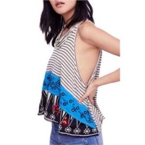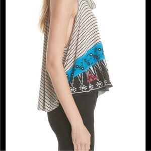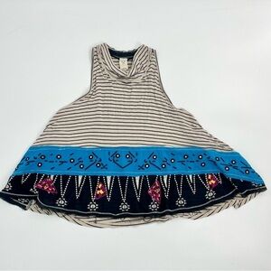 We the Free North South Tank top embroidered Cropped Boxy Striped Neutral Medium. Free People neutral black and cream stripe flowy beachy festival tank top. Light weight and eclectic boho style. Good pre-owned condition.