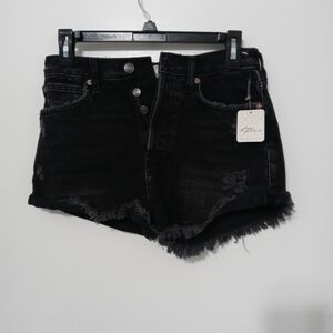 We the Free People 25 Black washed Distressed Button Fly Denim Shorty shorts