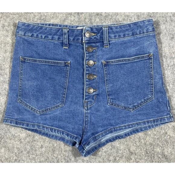 We the Free People Bridgette Button Fly High Rise Blue Denim Jean Shorts Size 28