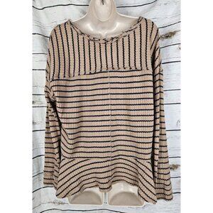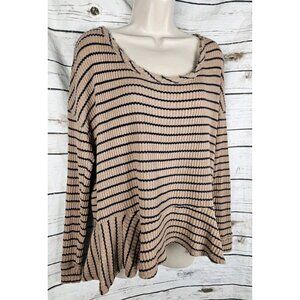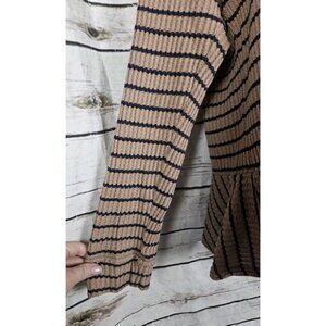We the Free People Brown Striped Ribbed Knit Top L Peplum Ruffle Womens