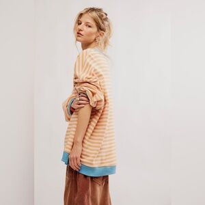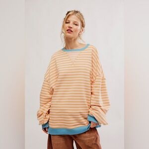 We the Free People Classic Striped Oversized Crewneck Contrast Hem Sz XS/L NWOT