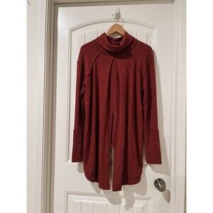 We the Free People Dark Burnt Orange Brown Cowl Split Back Turtleneck Sweater L