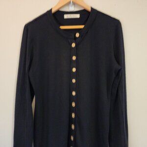 We the Free People Duster Cardigan Dress Thermal Raw Hem Trim Black Women L
