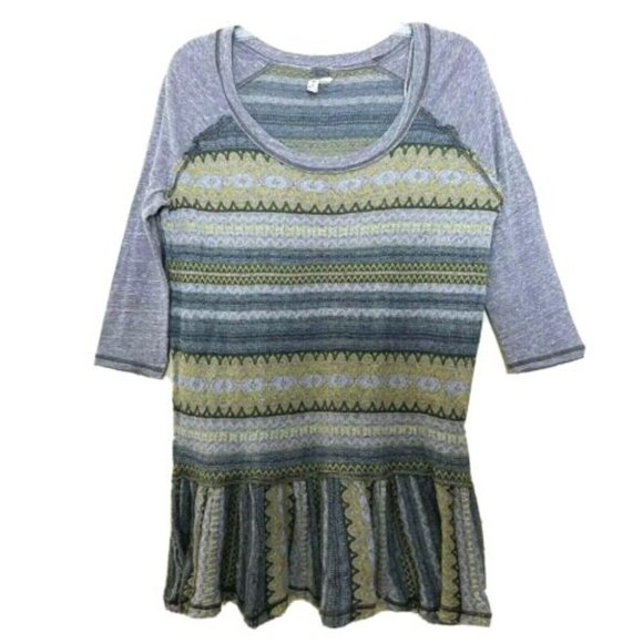 We the Free People Fair Isle Boho Tunic Mini Dress Size Small Raglan Sleeve