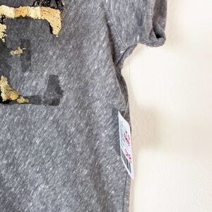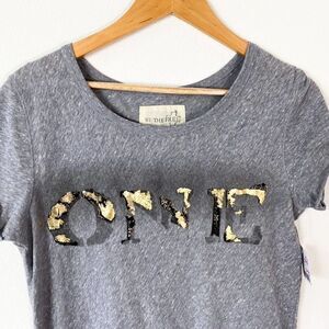 We the Free gray slanted graphic shirt. Short sleeves. ONE printed in gold.