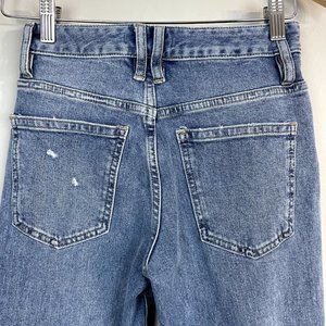 We the Free People Jeans Womens 25 Blue Distressed Cropped Button Fly Stretch