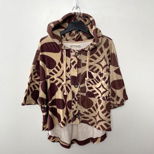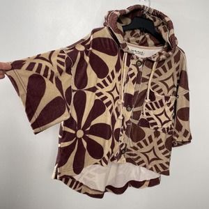 We the Free People Large Terry Cardi Cardigan Hooded Mod Floral Short Sleeve