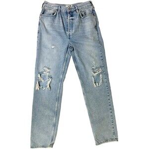 We the Free People Lasso High Rise Jeans Distressed Light Wash Blue Denim Sz 30