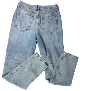 We the Free Free People Lasso Jeans in a light wash blue with a distressed finish. These relaxed style jeans feature straight legs, a high waist, and multiple beautiful distressed details such as knee holes and rubbed edge hems. Button front fly, 5 pocket design, 100% cotton. Excellent used condition. 100% cotton. Women's size 30, measurements pictured.