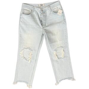 We the Free People Paradise Blue Distressed Raw Hem Button Fly Jeans 30 NEW Tags