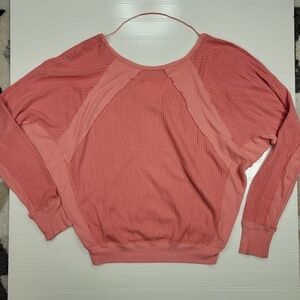 Peach / Salmon colored waffle knit dolman  sleeve blouse top. Size xs