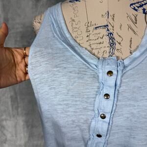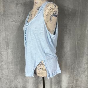 We the Free People Scoop Neck Tank Top Size Small Blue Relax Raw Edge Trim Snap
