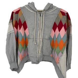 We the Free People Sha Sha Hoodie Sweatshirt Oversized Patchwork Size XL NWT