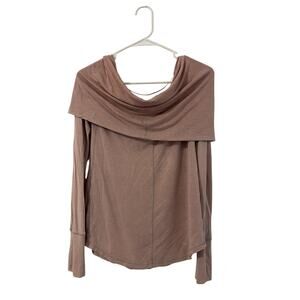 We the Free People Size S Cosmo Cowl Neck Shirt Top Pink Long Sleeve