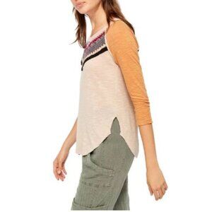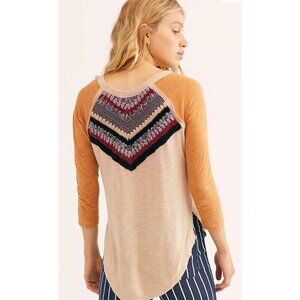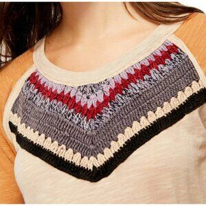 We the Free People Spring Bound Crochet Yoke Linen Blend Top Boho Women's XS $98