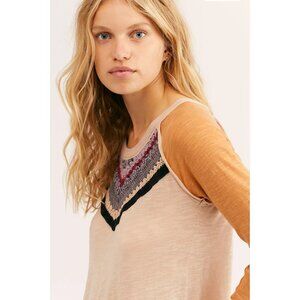We the Free People Spring Bound Crochet Yoke Linen Blend Top Boho Women's Sz XS $98