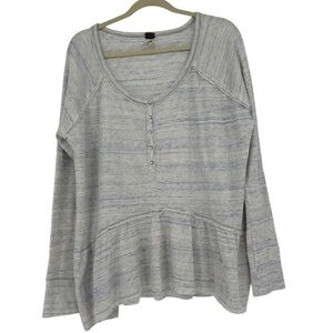 We the Free People Top Size L Gray Coastline Peplum Henley Thermal Long Sleeve