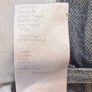 These are We the Free People distressed jeans in blue, made of 100% cotton. They are a size 26 with a straight fit and a mid-rise of 9.5". The jeans feature a 5-pocket design with button closure and a 27-inch inseam. The fabric wash is light, and they have a festival and hippie theme. This item is part of the We The Free product line. Excellent Condition!