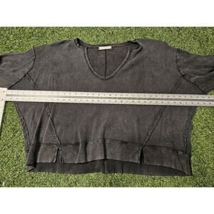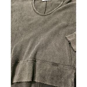 We the Free People Women's Small Top Buttercup Waffle Thermal Black Gray Grunge