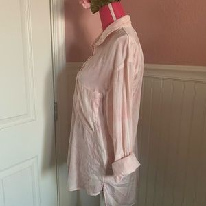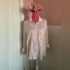 We the Free Pink Button Down Long Sleeved Shirt; EUC; slouchy and casual - would look amazing with white linen loungers!